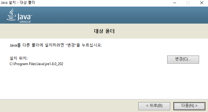 변수값 : C:\Program Files\Java\jdk1.8.0_202 (JDK가 설치되어있는 파일경로)