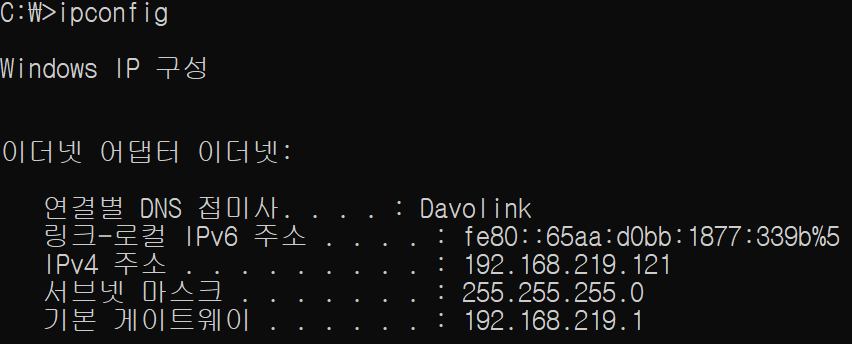 : 내 window ip의 구성확인(컴퓨터 정보)