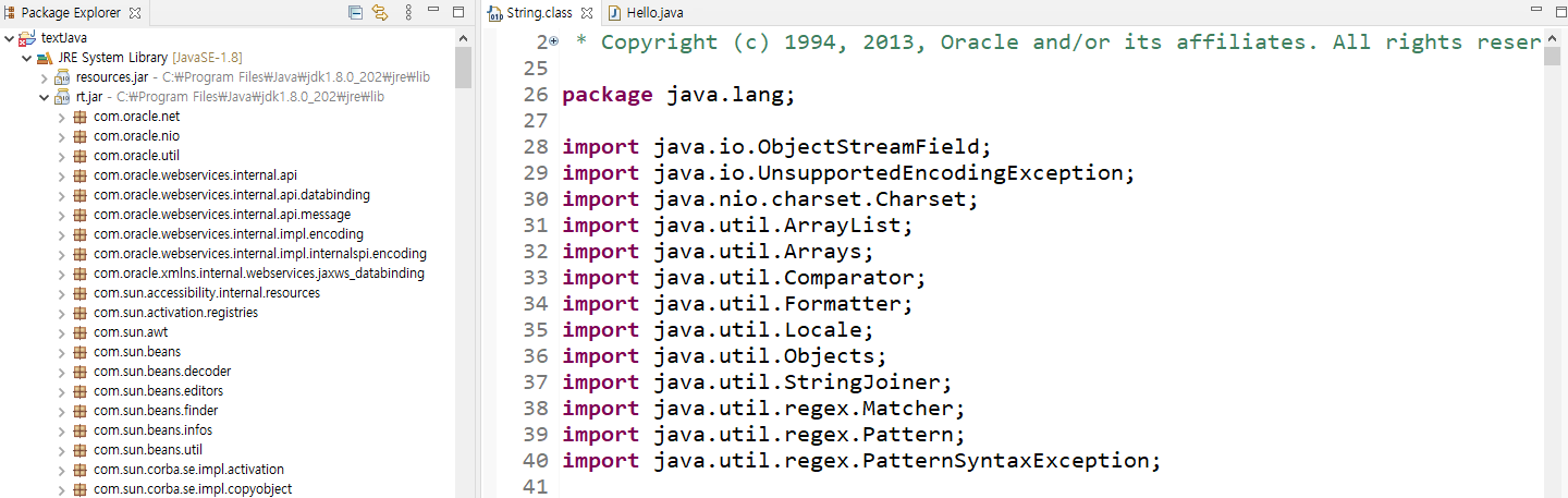 이클립스에서 java.lang 패키지 확인하기