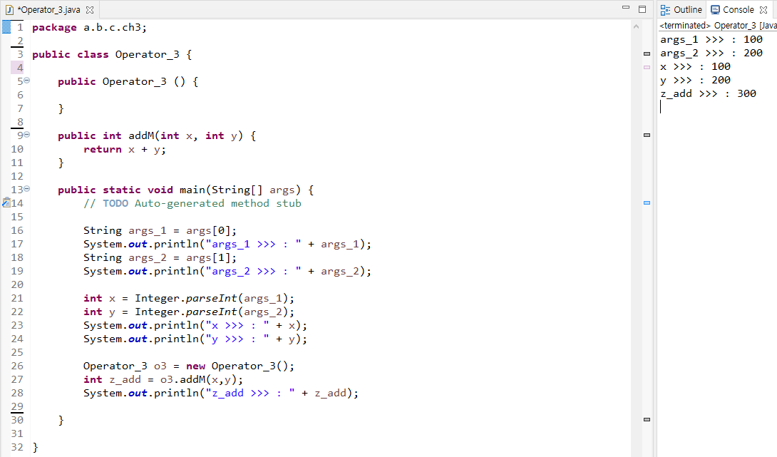 실행할때 Run As - Run Configurations… - Arguments 에 입력한 값이 출력된다.
