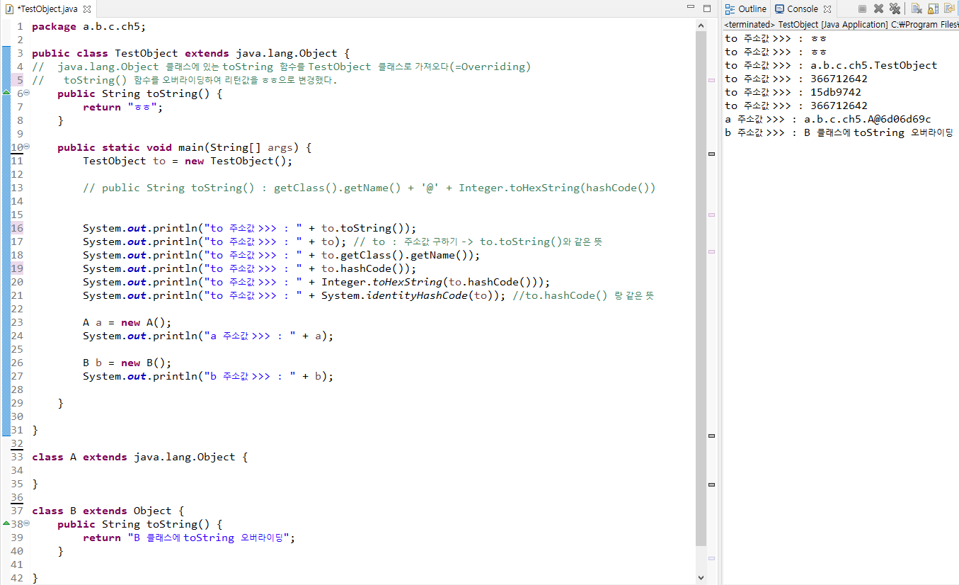 ⇒ 구조 : getClass().getName() + '@' + Integer.toHexString(hashCode())