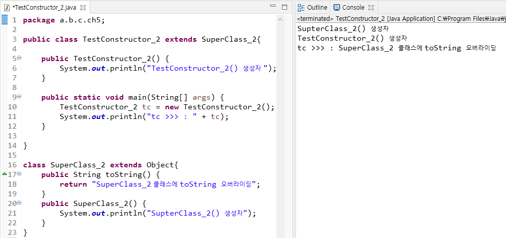 이때 생성자를 메모리에 올릴 때 클래스의 상속관계를 확인한다.