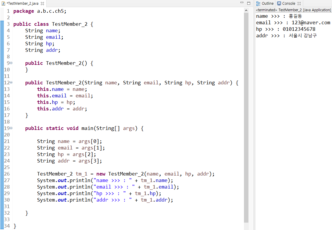 방법3) 이클립스에서 아규먼트 값을 받아 출력한다.