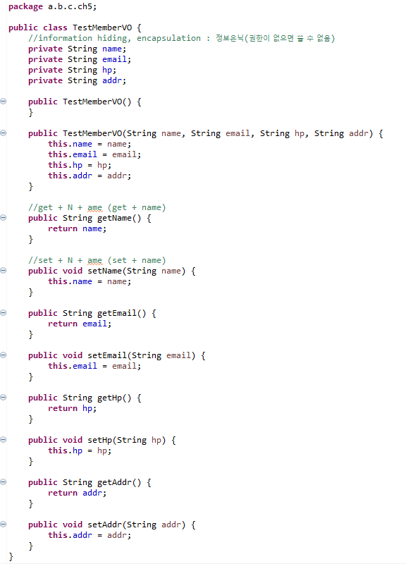 //information hiding, encapsulation : 정보은닉(권한이 없으면 쓸 수 없음)