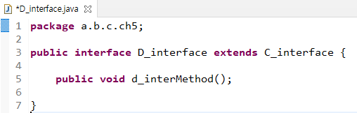 - 단일상속(simple inheritance) impolement 키워드 : interface클래스 상속 시 사용