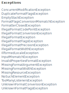 * Exceptions : 예외클래스의 최상위 클래스(모든 예외처리는 Exception에 포함되어있다)