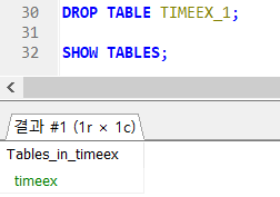 => TIMEEX 데이터베이스를 사용할것이다.(아래의 구문을 실행하면 TIMEEX 데이터베이스에 적용됨)