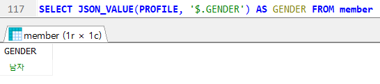 > JSON_VALUE(컬럼명, $.KEY값);